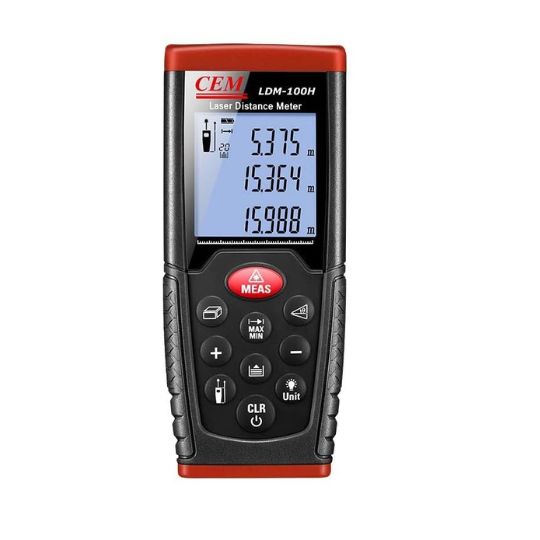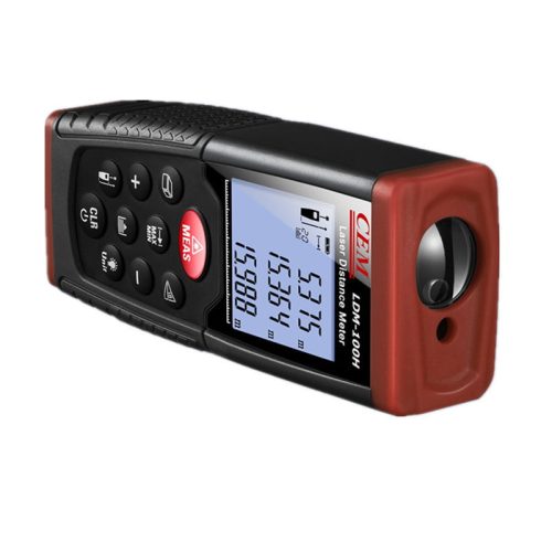 - Máy đo khoảng cách laser CEM LDM-100H có thể thực hiện các phép đo khoảng cách, đo diện tích, thể tích, đo gián tiếp Pythagoras…