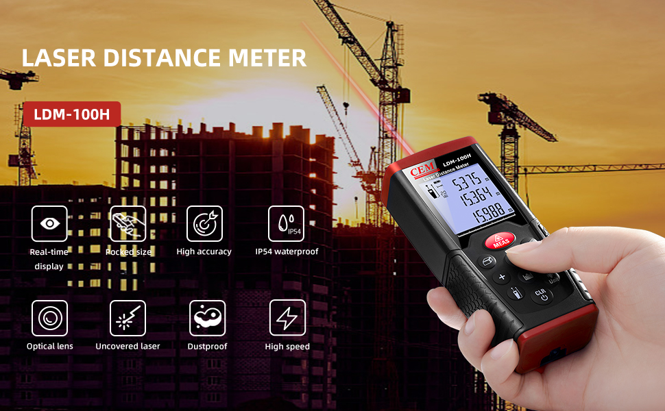 Máy đo khoảng cách laser CEM LDM-100H là dòng máy đo khoảng cách cầm tay tiện lợi với độ chính xác cao, sai số chỉ 1,5mm cho phạm vi đo từ 0,05 đến 100 mét. Máy đo cầm tay thay thế cho phương pháp đo truyền thống bằng thước dây thông thường, chỉ cần 1 người đo có thể tiếp cận được ở những nơi khó. Máy có tính ứng dụng cao đo khoảng cách, diện tích, thể tích… trong nhiều lĩnh vực như xây dựng, nội thất, lắp đặt điện nước hay trong nhu cầu dùng hàng ngày.
